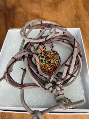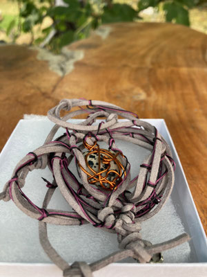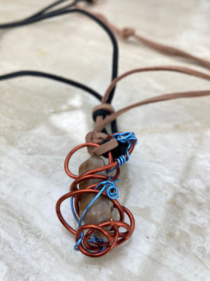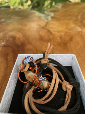 Caffe latte calcite wrapped in copper native amulet necklace £105