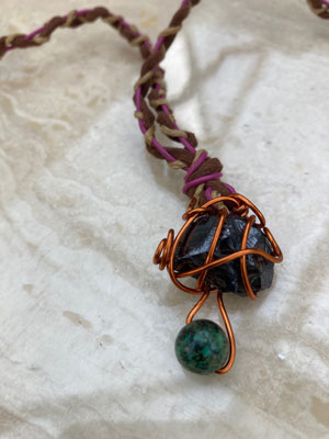 Shungite and malachite copper native amulet necklace £95