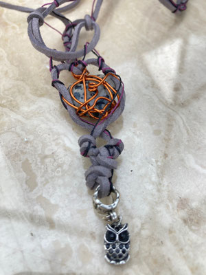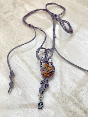 Kumbaba heart jasper wrapped in copper with owl native amulet necklace £95