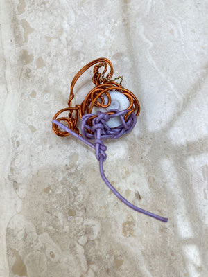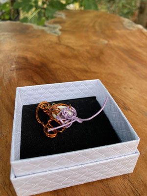 Copper and amethyst pendant. It can be use as a car pendant, as a pendant to wear or as an ornament. Very delicate.
