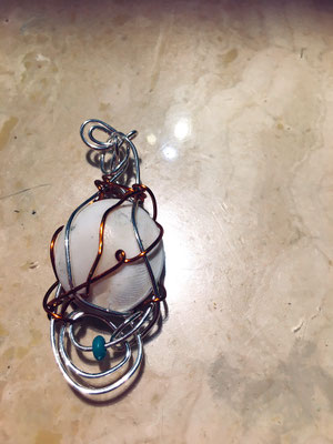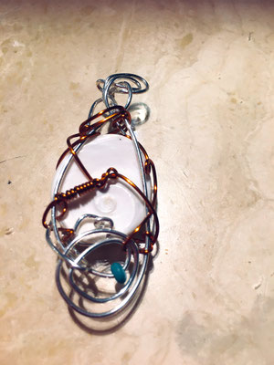 Made with green copper, gemstones (aventurine, sodalite, tourquoise stone) and leaf.